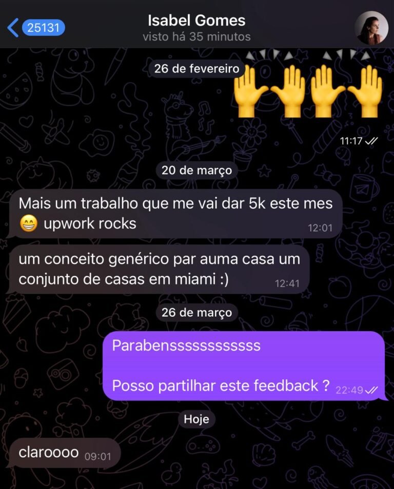 A Isabel, foi uma das primeiras alunas que tive, pois quando ainda nem tinha o VNA fiz uma pequena mentoria para perceber que matéria seria necessária para o curso (uma das coisa que ensino no VNA), e a verdade é que atingiu os 5000€ por mês, que lhe permitiu despedir-se do seu trabalho antigo e trabalhar menos horas (ganhando mais) para ter mais tempo com os filhos.